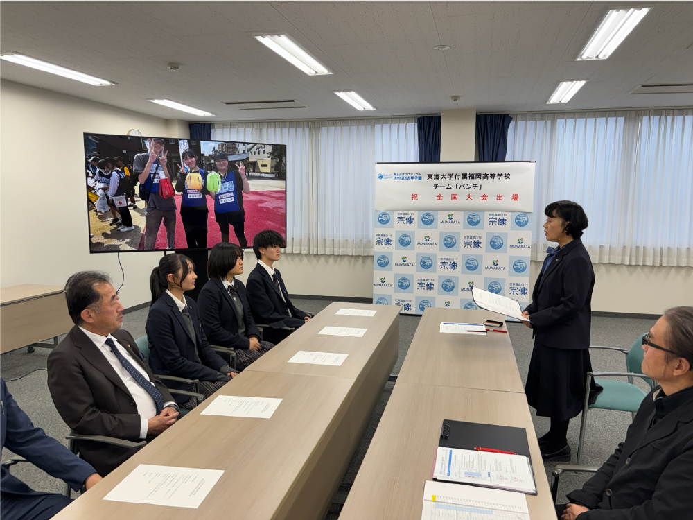 10月に宗像市で開催された福岡県大会で優勝したチーム「バンチ」(東海大福岡高校)のメンバーが、11月25日、全国大会を前に宗像市の伊豆美沙子市長を表敬訪問しました✨