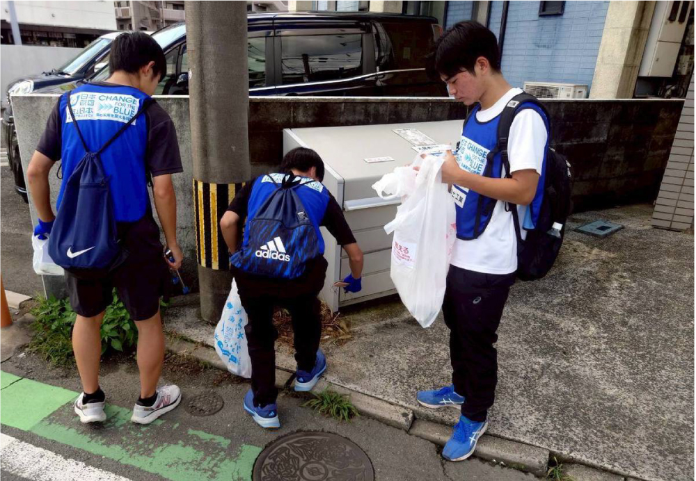 一見、綺麗な街の様子なのですが、高校生たちは駐車場の周辺、自動販売機の裏側など細かい箇所も入念にチェック。残暑が厳しい中でしたが、一生懸命ごみを拾い集めました💪🏻🔥