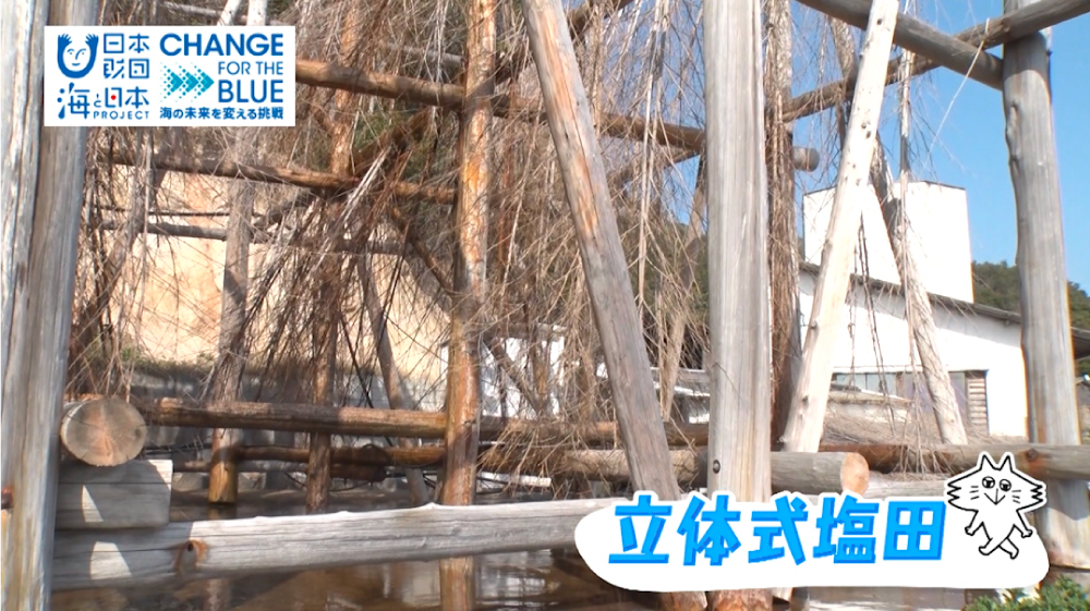 汲み上げた海水は、木と竹だけで作られた立体式の塩田で約10日間天日と風に当てて濃縮し、3倍の濃度になったら釜で炊き上げ塩を作ります。